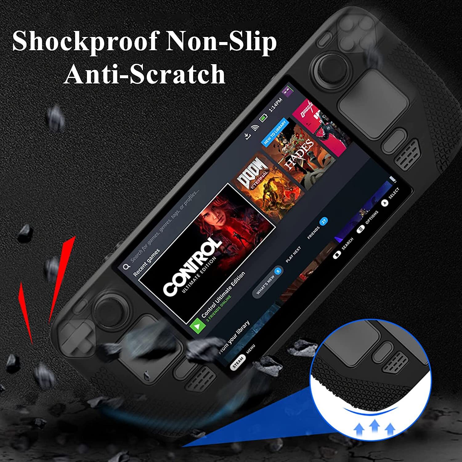 Steam Deck OLED Case Silicone Cover with Thumb Grips Durable Full Protection