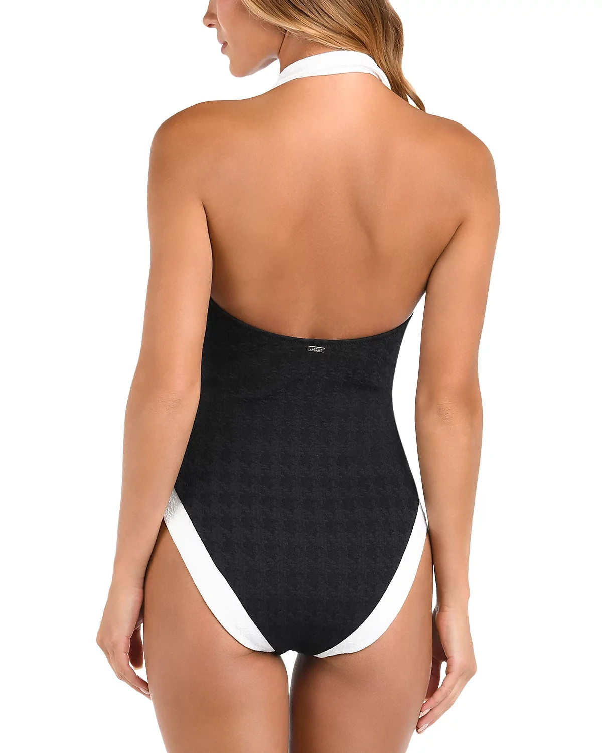 L'Agence Natalya Collared One Piece Swimsuit, Black/White, S