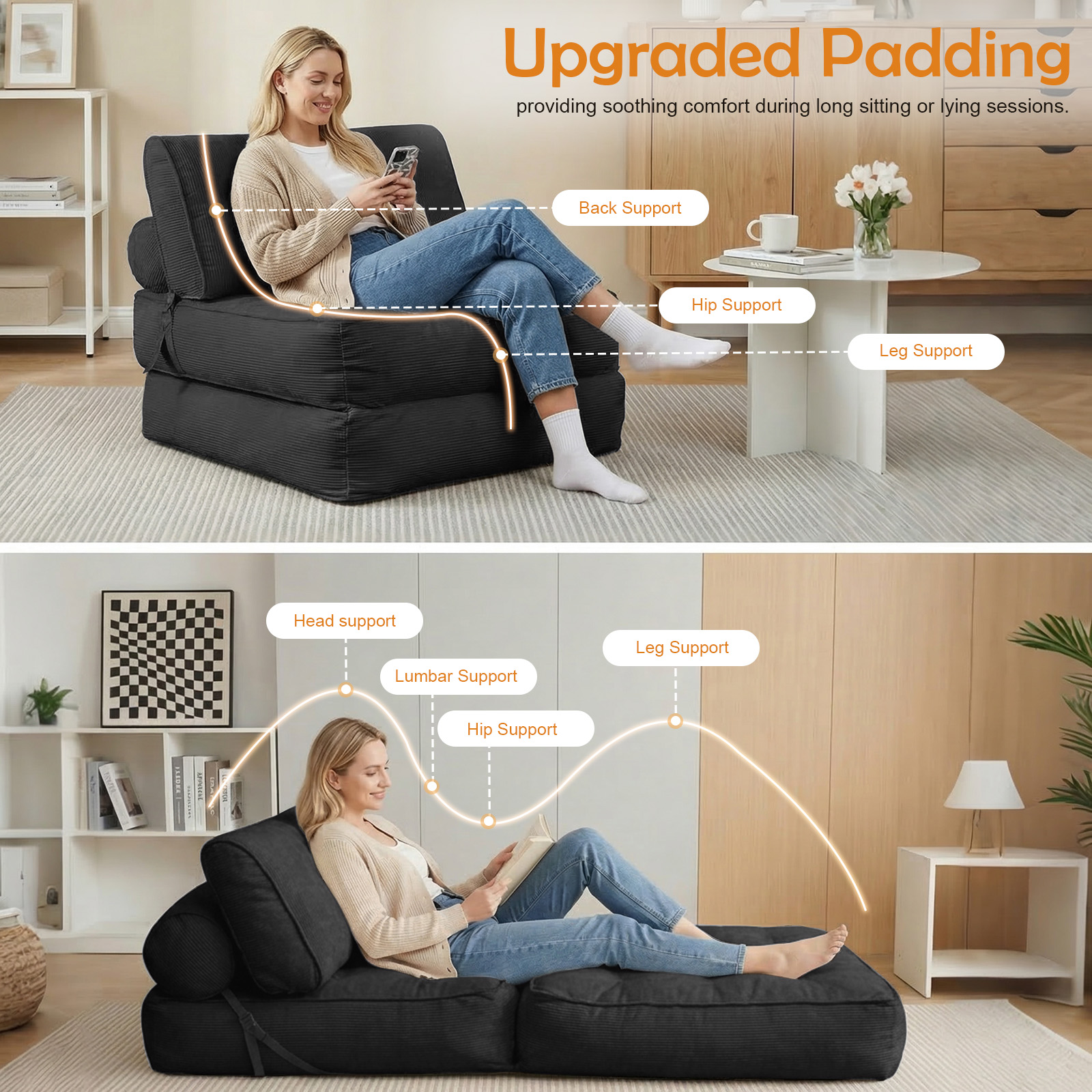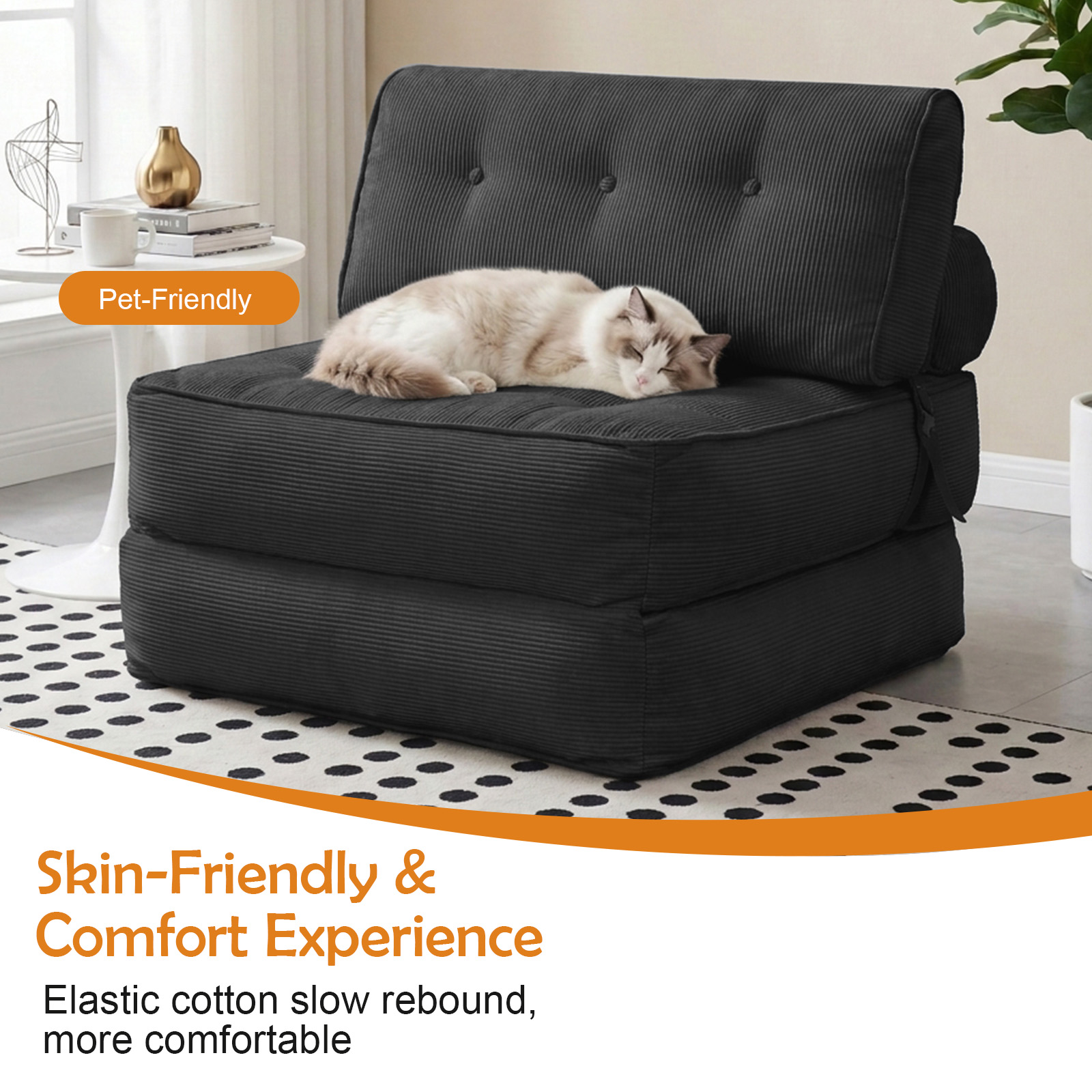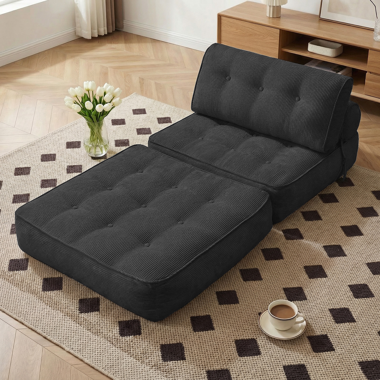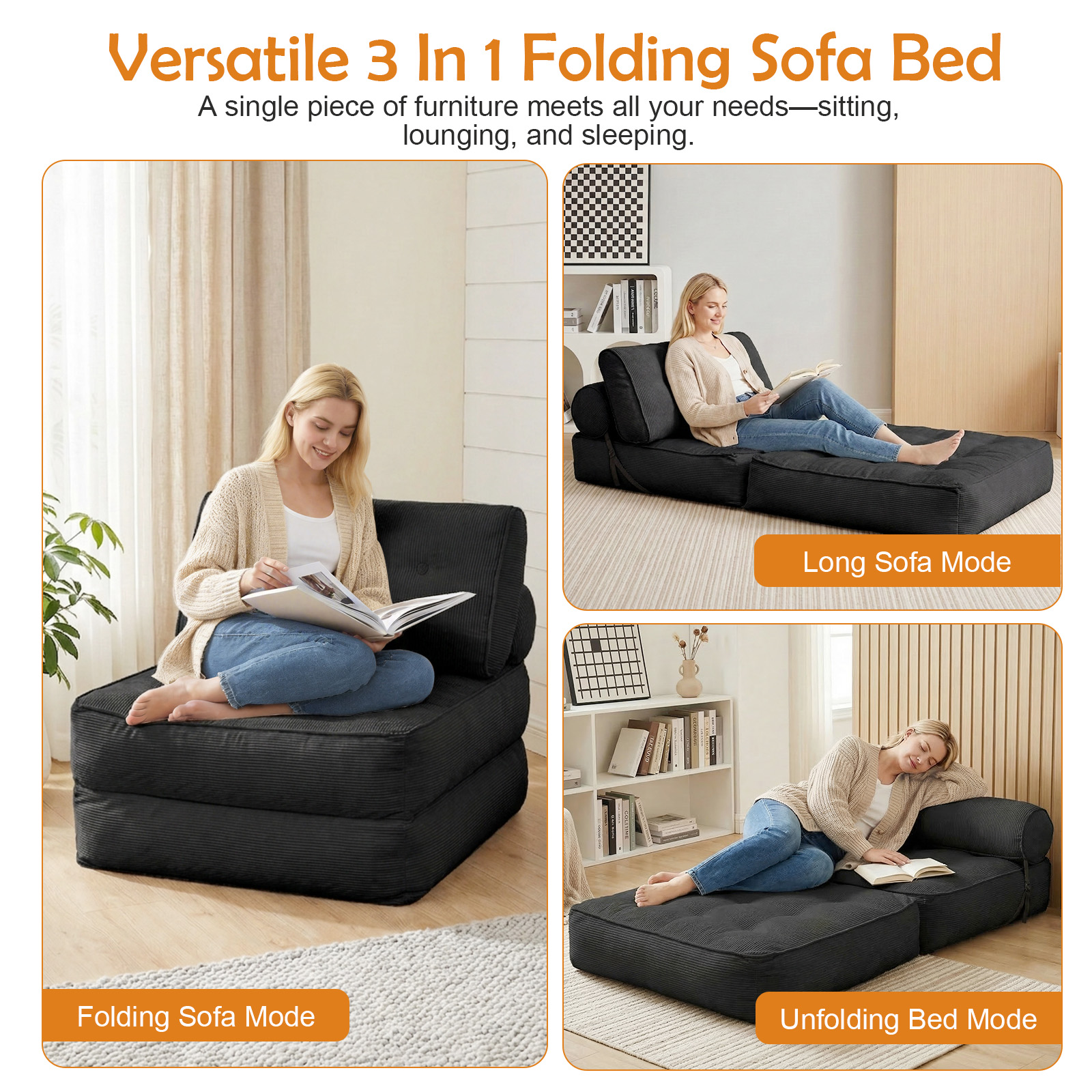 2-in-1 Folding Convertible Sofa Bed,Corduroy Cloud Floor Couch with Side Pocket