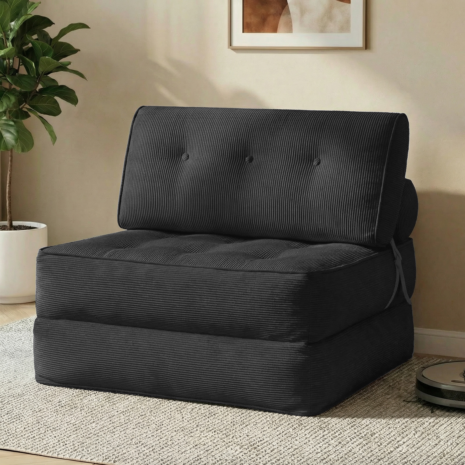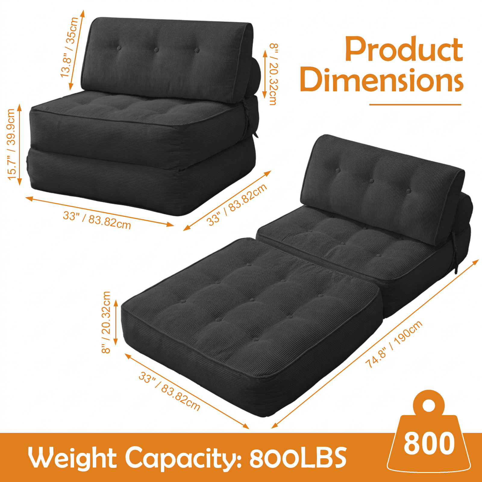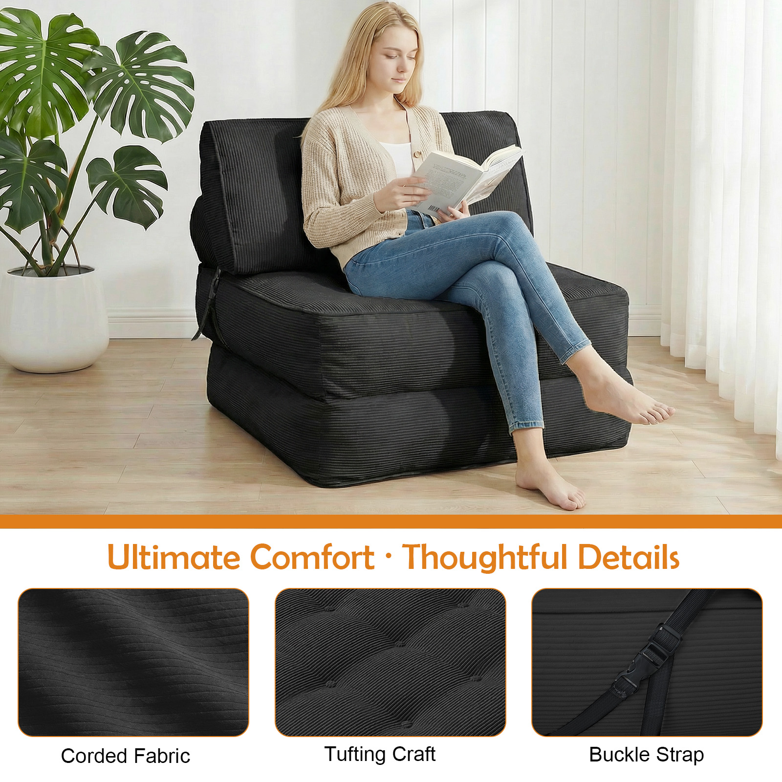 2-in-1 Folding Convertible Sofa Bed,Corduroy Cloud Floor Couch with Side Pocket