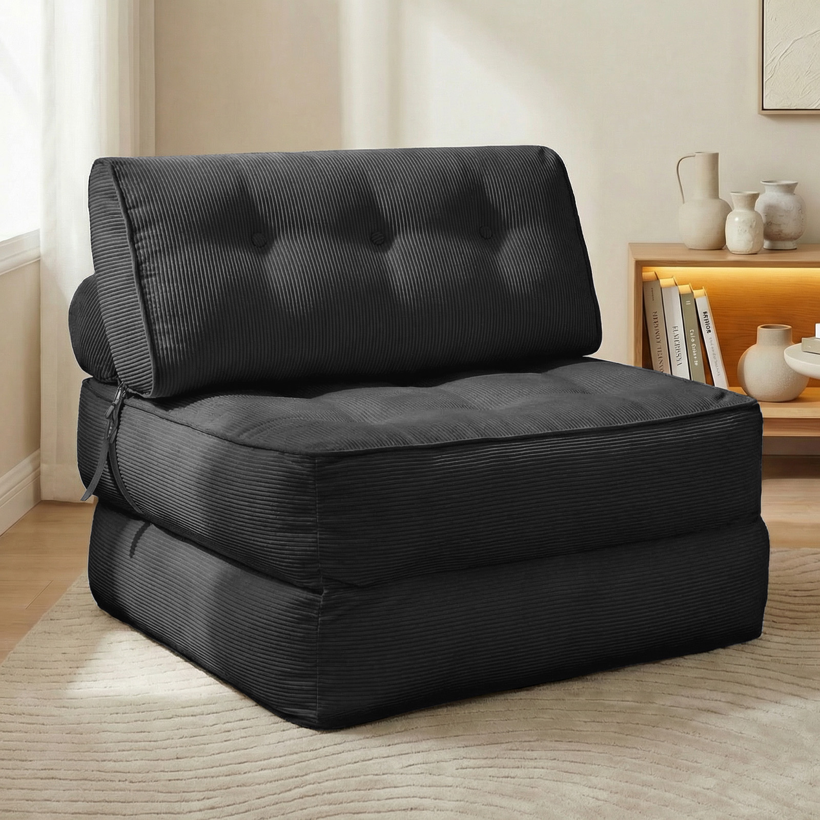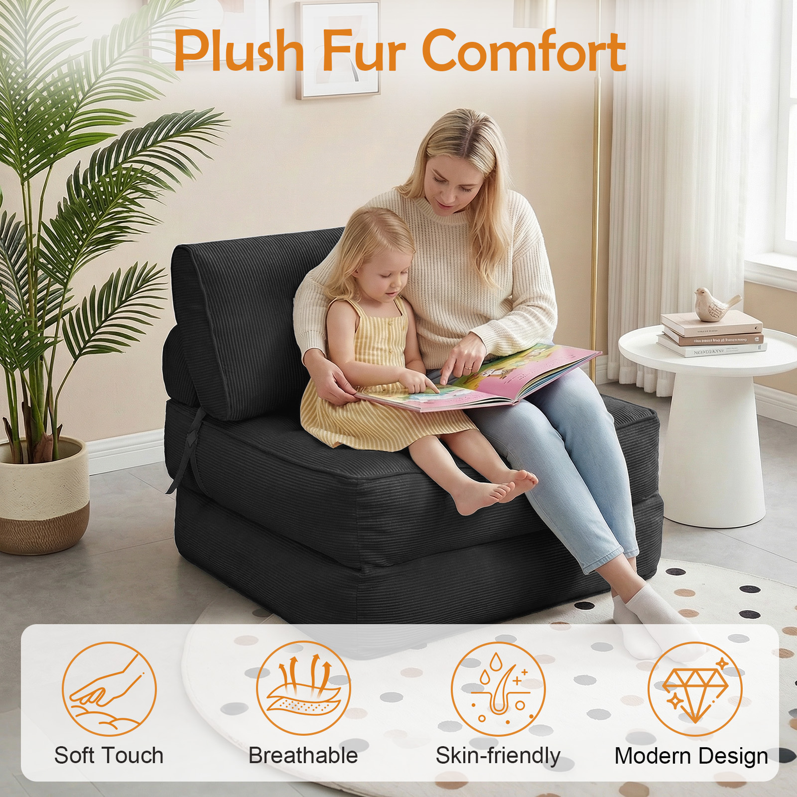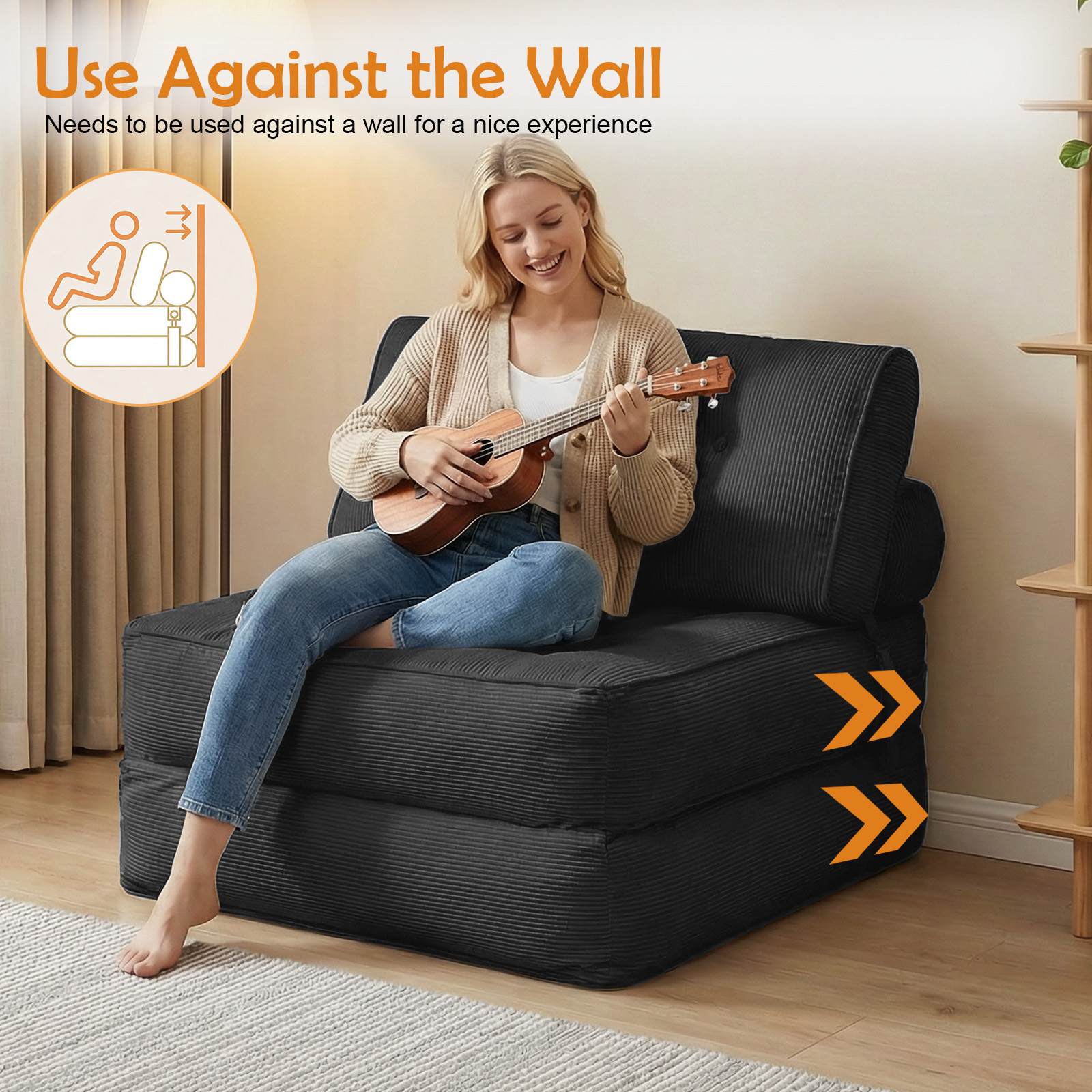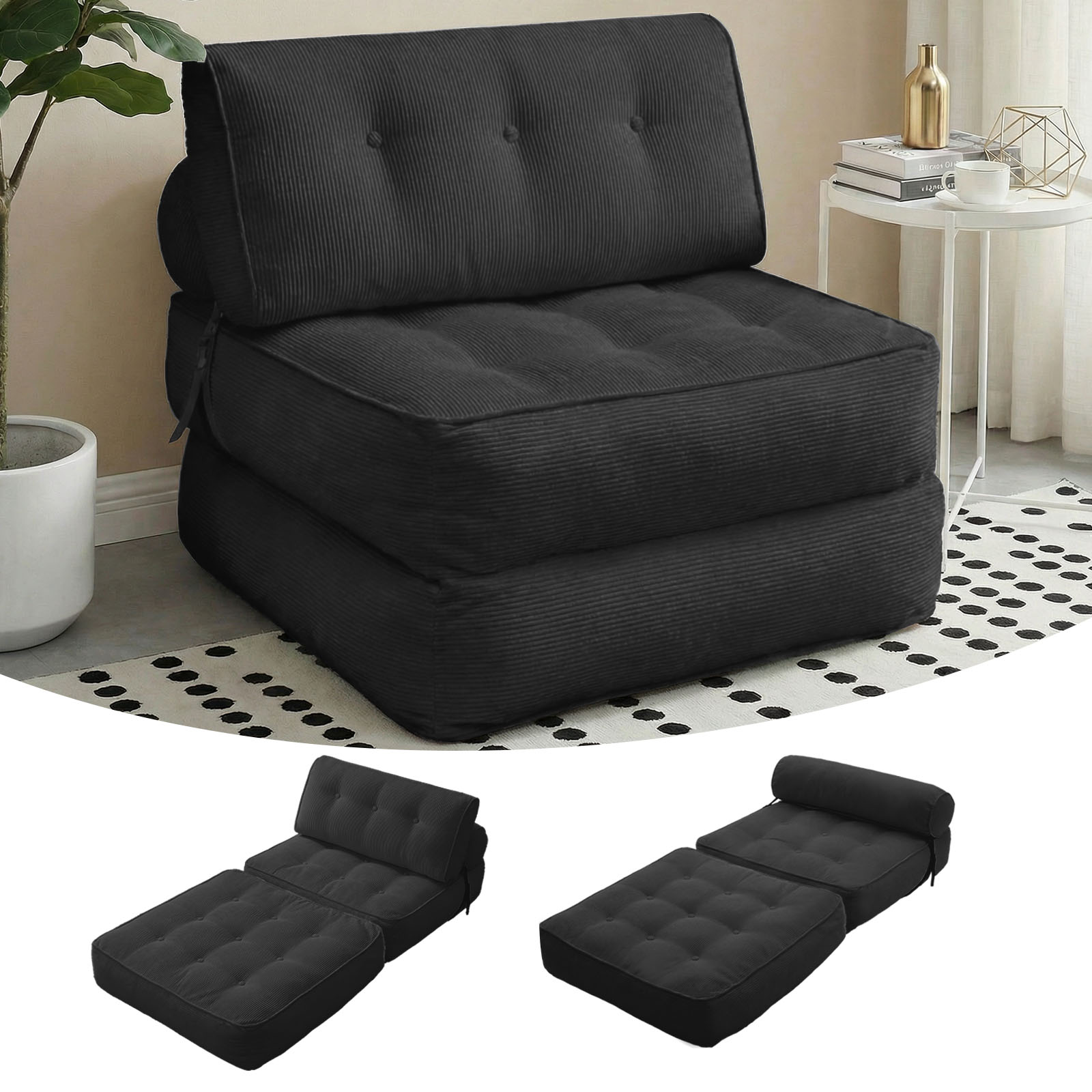 2-in-1 Folding Convertible Sofa Bed,Corduroy Cloud Floor Couch with Side Pocket