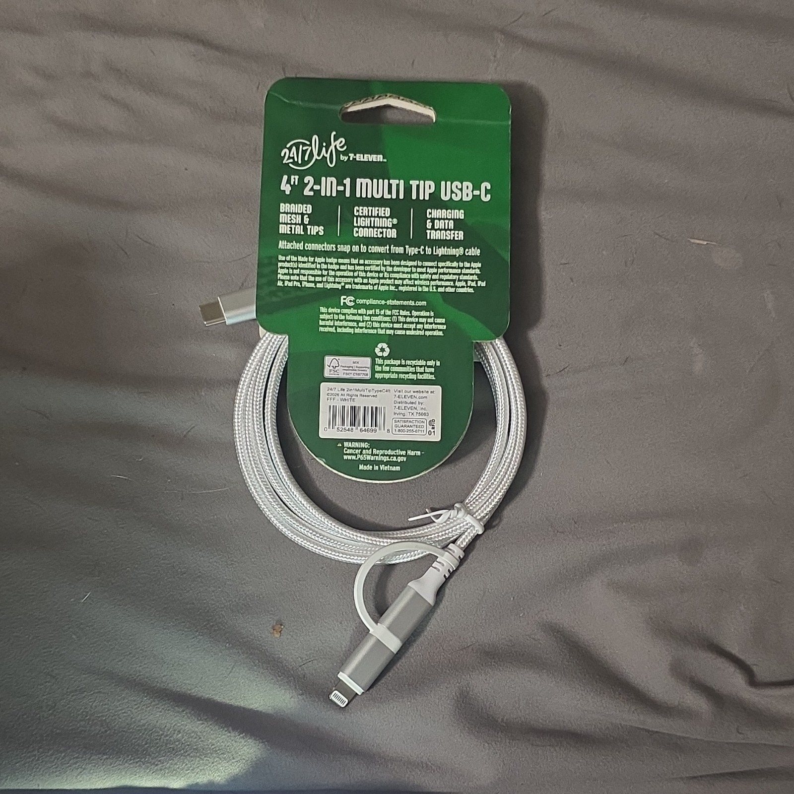 24/7 Life by 7-Eleven Type-C Car Charger Rapid Charge 4ft Cable MPN 160532