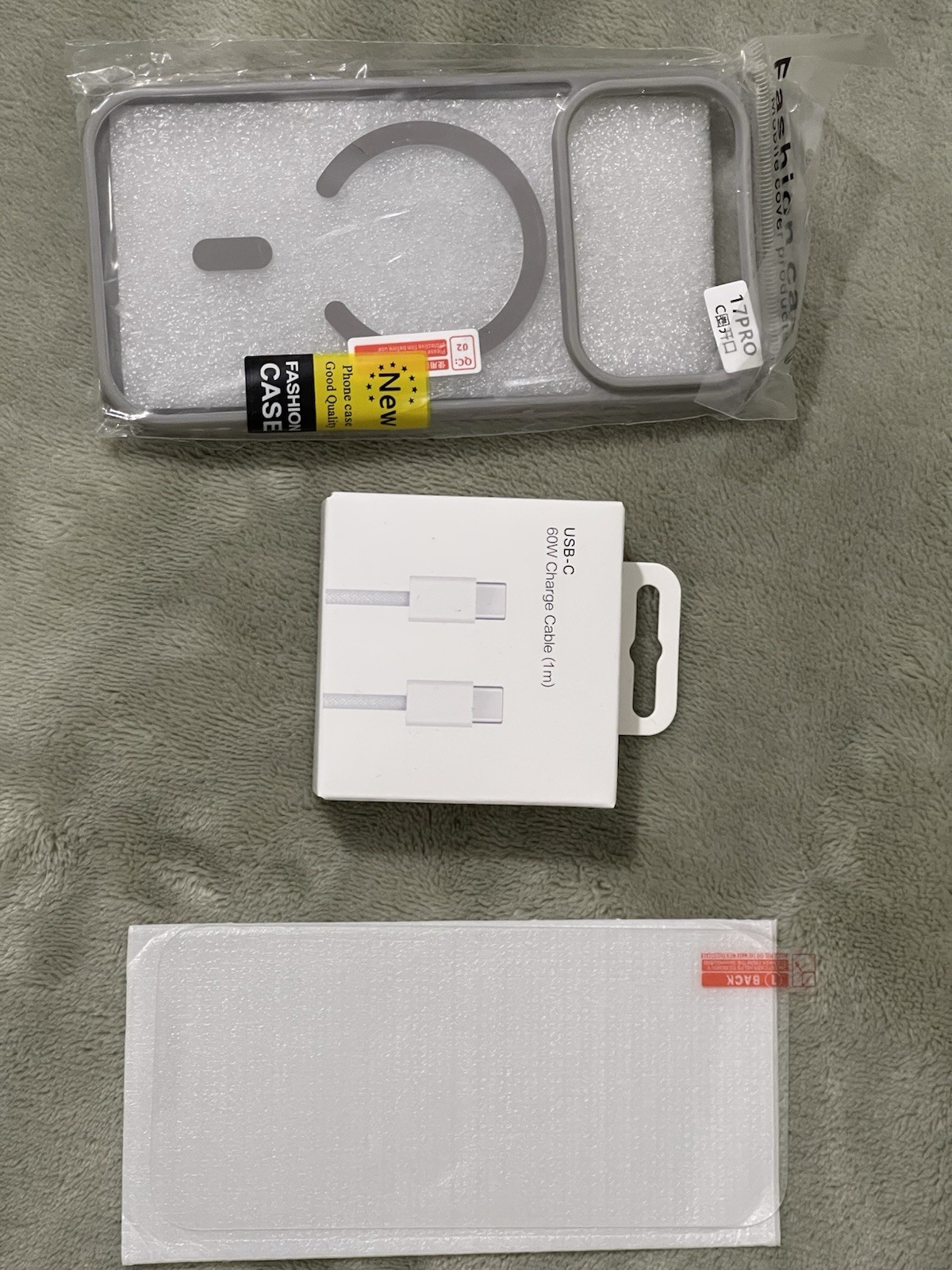 ✔ Practical 2+1 bundle. ✔ Compatible with iPhone 17 Pro. Gray protective case. Tempered glass screen protector.