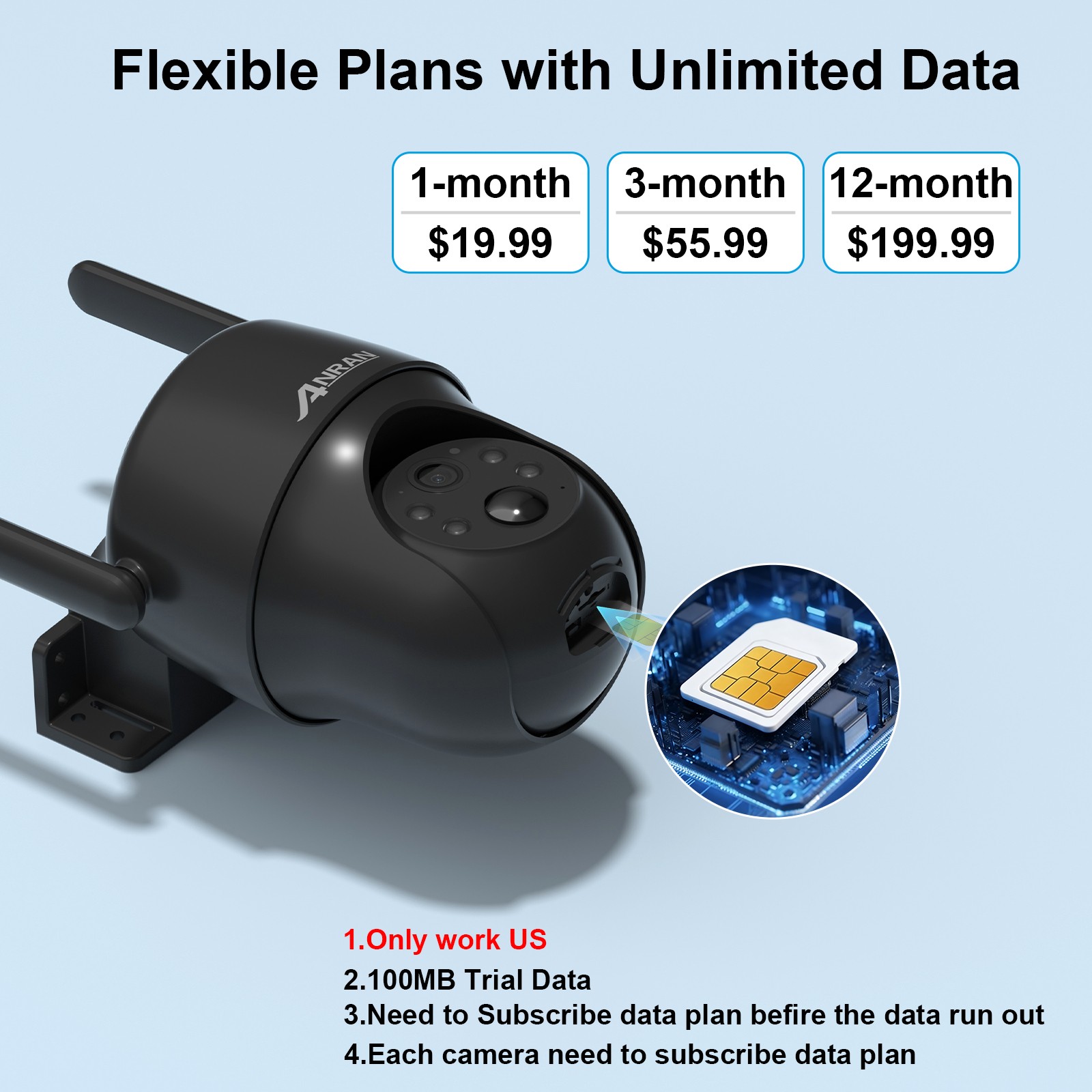 ANRAN 4G LTE Cellular Wireless Solar Battery Security Camera Outdoor w/ SIM Card