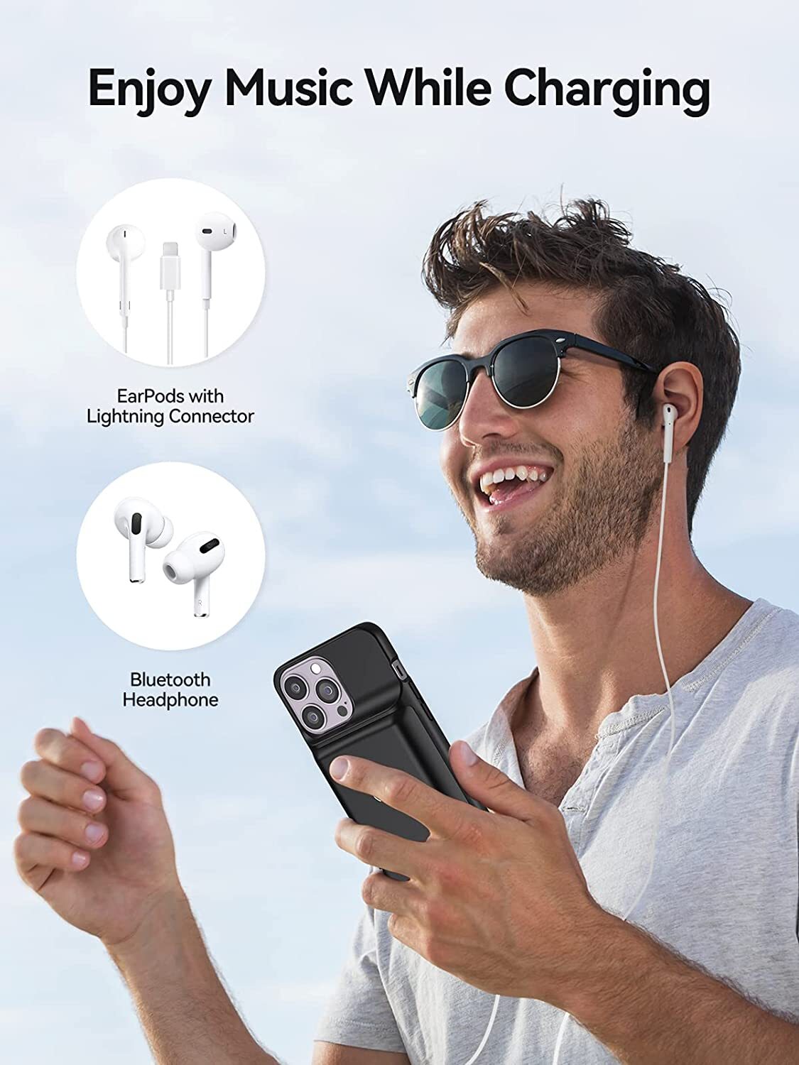 Newdery Battery Case extends more than 250% iPhone X/Xs' battery capacity. Features of iPhone Battery Case One case, two functions - protection and charging. Reverse Charging Protection. Soft plastic head.
