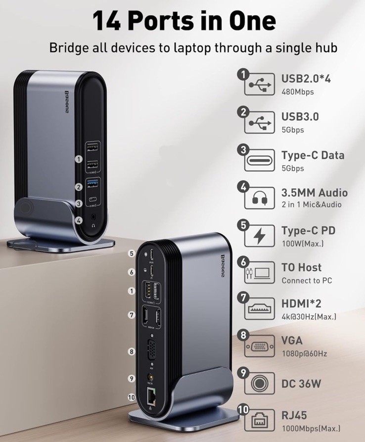 MOKiN 14-IN 1- USB C Laptop Docking Station Dual Monitor - MODEL MOUC0221